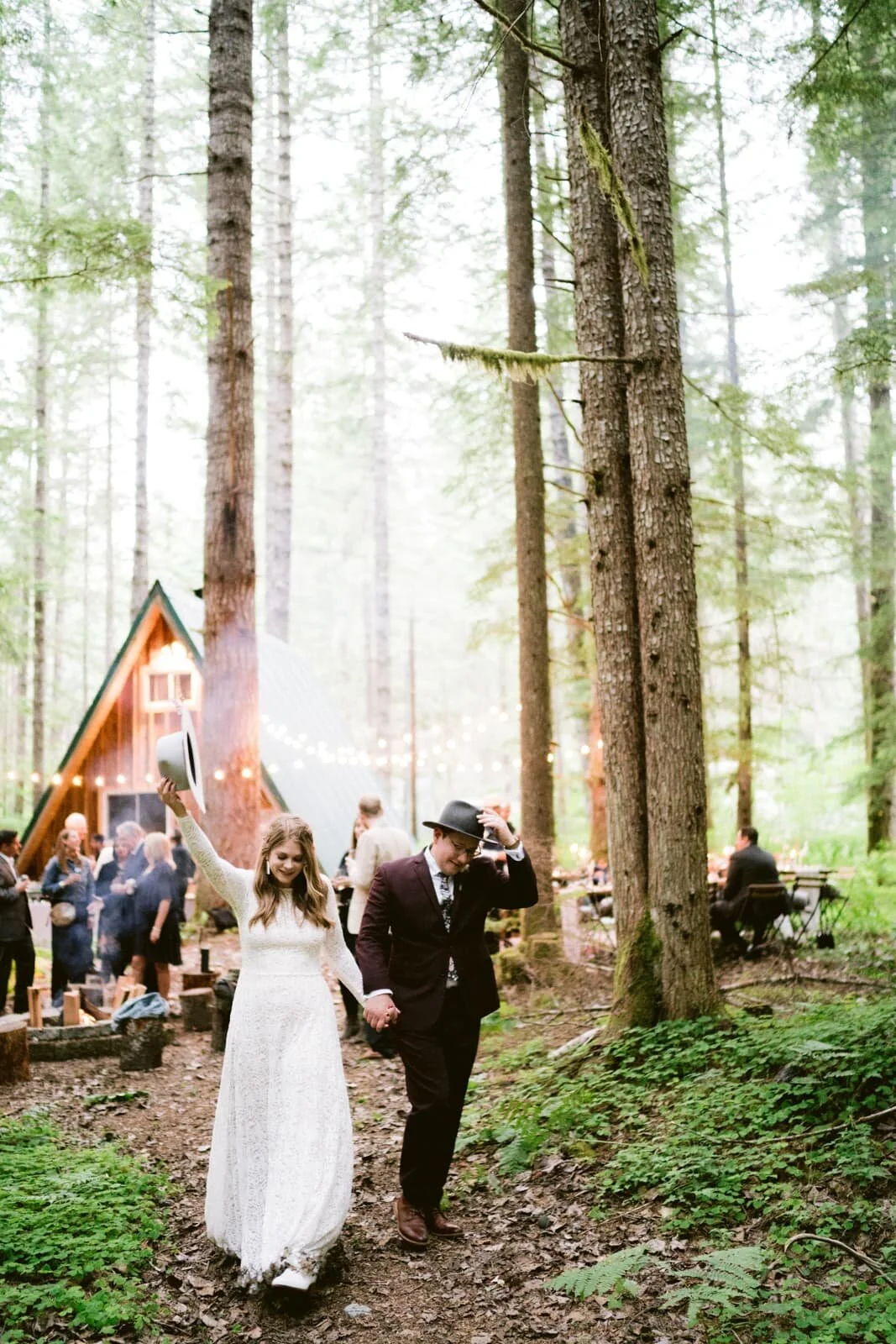 A magical Mount Rainier wedding, with an A-Frame cabin backdrop.